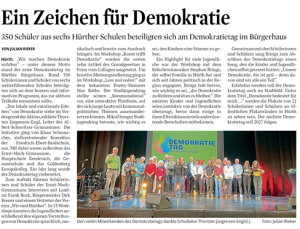 Wir waren heute mit einer kleinen Schülergruppe beim Demokratietag im Bürgerhaus Hürth. Der Tag war ein voller Erfolg und hat nochmal gezeigt, wie wichtig es ist, dass wir Demokratie nicht nur im Unterricht besprechen, sondern auch erleben. Nach der offiziellen Begrüßung durch Bürgermeister Dirk Breuer und den Landrat Frank Rock ging es für unsere Schüler …